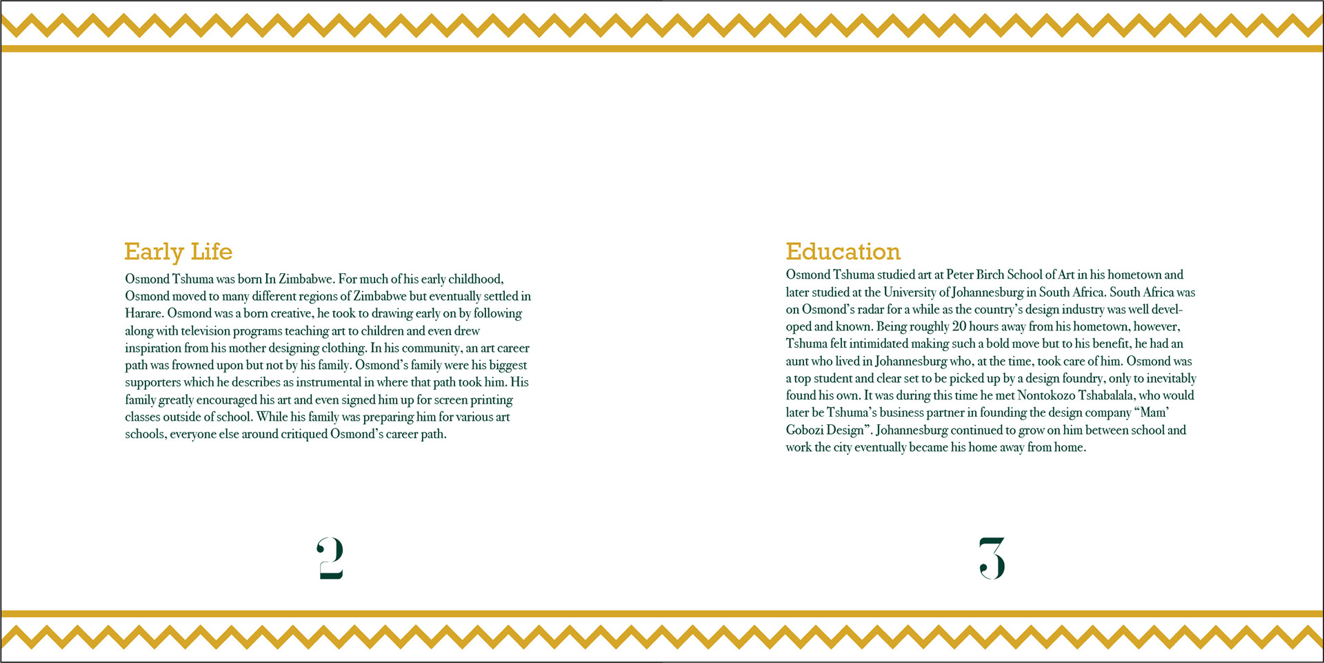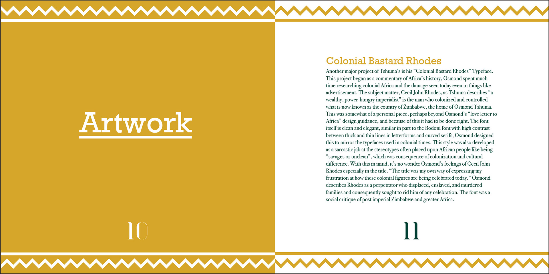 Typography II Project: I selected a Type Designer to investigate and write/design a book based on them. I selected the Zimbabwean, South African based designer, Osmond Tshuma.